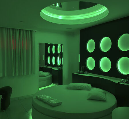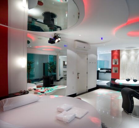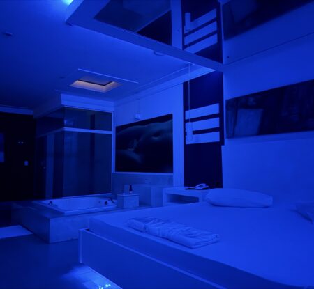 Smart TV 50”, Ar Condicionado Split, Cadeira Erótica, Color Light, Frigobar, Caixa de Som Bluetooth, Hidromassagem e Pista de Dança