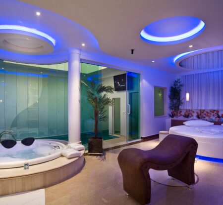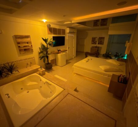 Smart TV 50”, Ar Condicionado Split, Cadeira Erótica, Color Light, Frigobar, Caixa de Som Bluetooth, Hidromassagem e Sauna