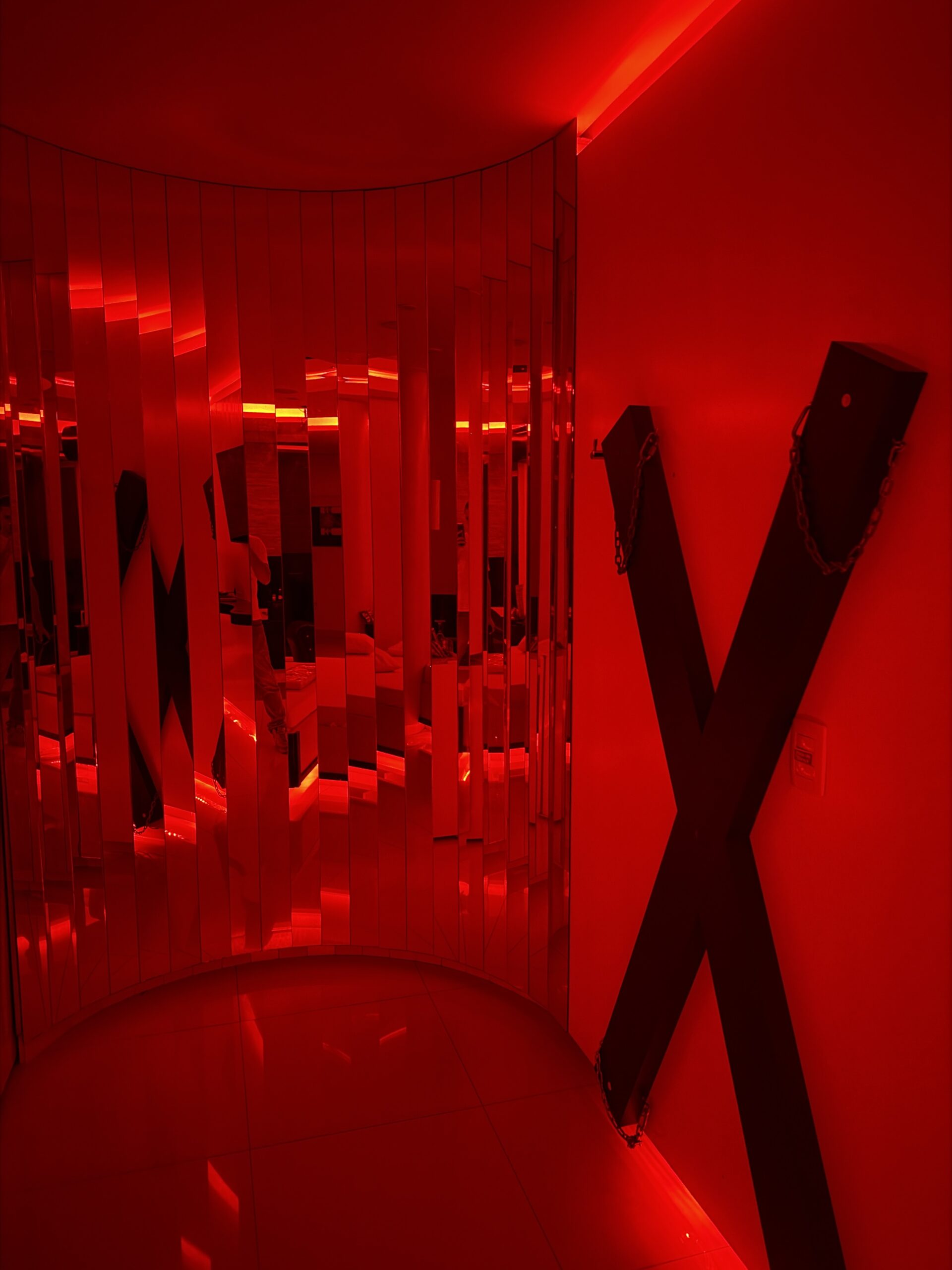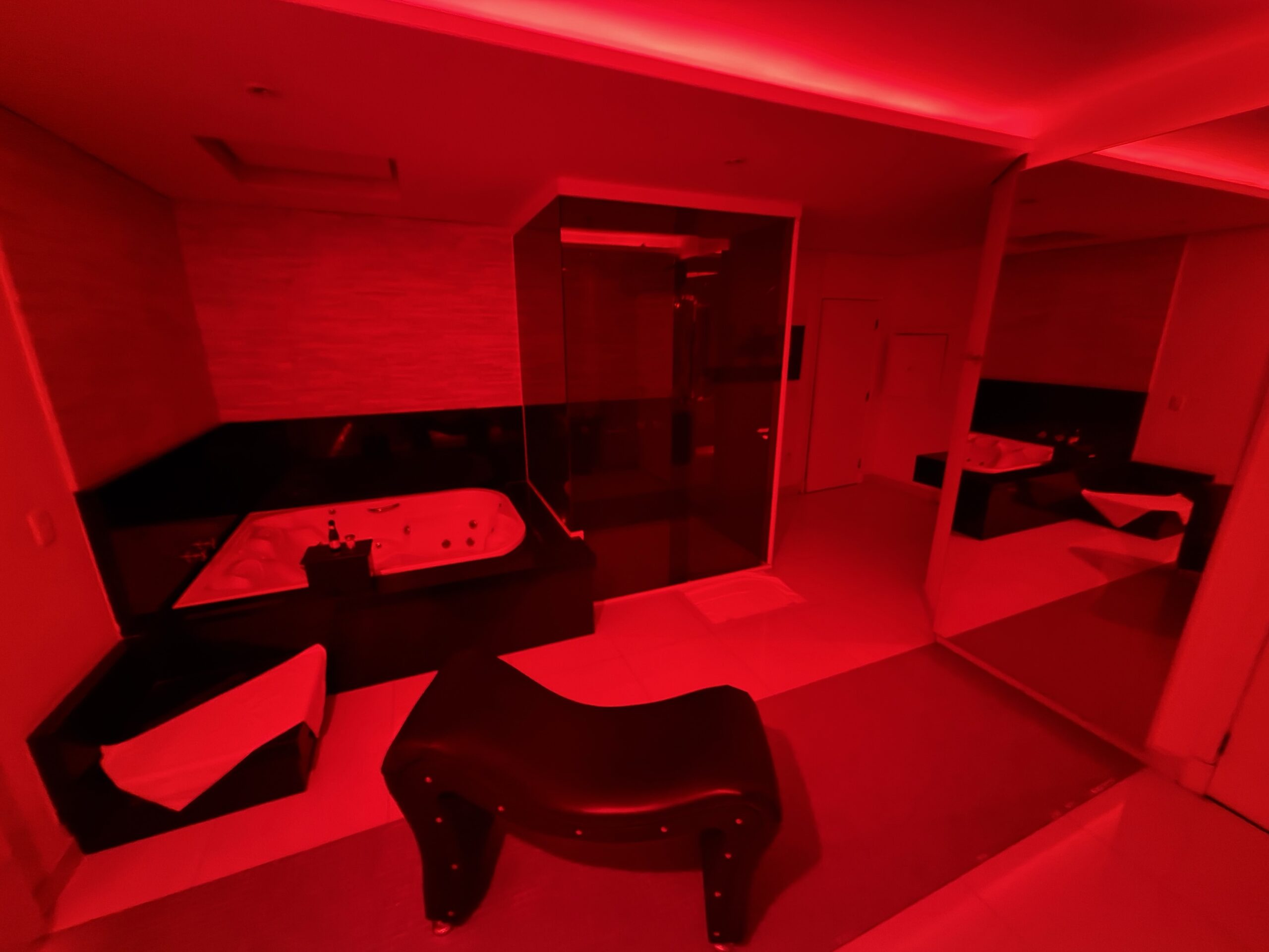 Smart TV 50”, Ar Condicionado Split, Cadeira Erótica, Color Light, Frigobar, Home Theater, Hidromassagem, Sauna, Pole Dance e Pista de Dança