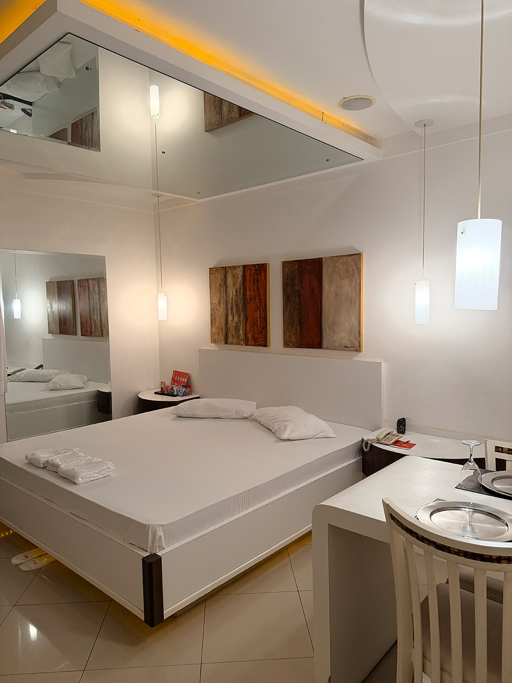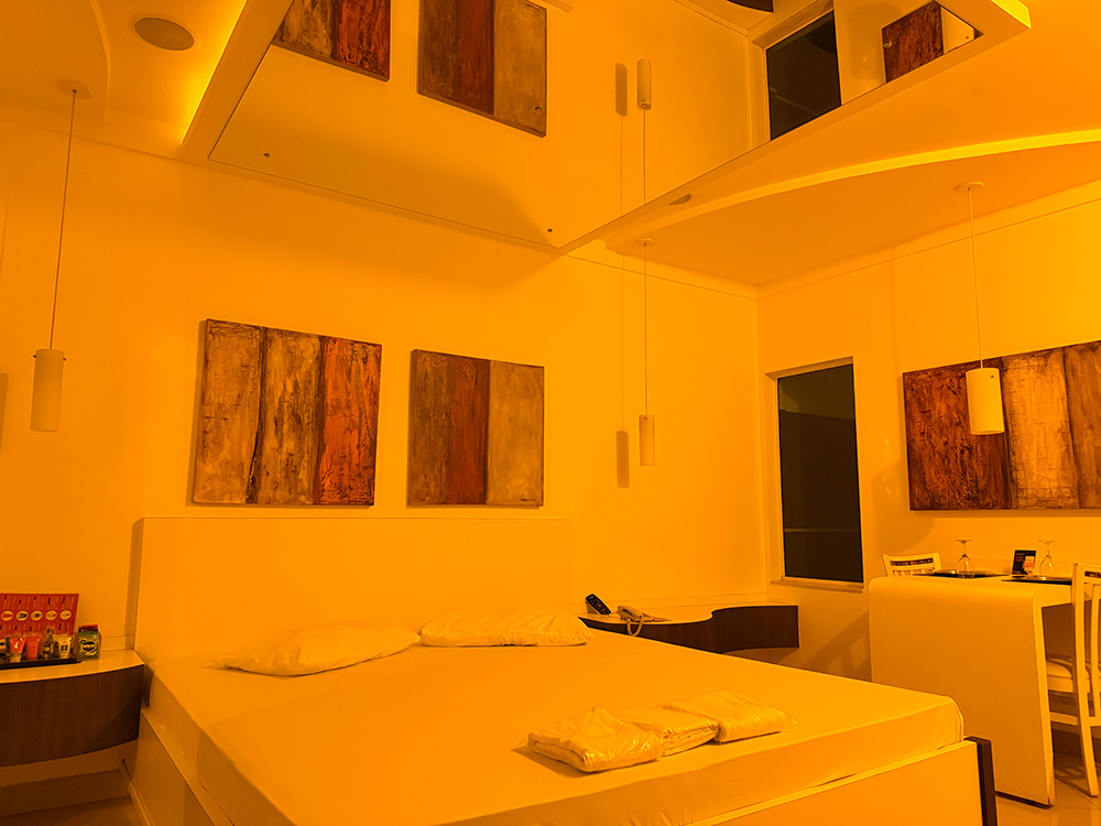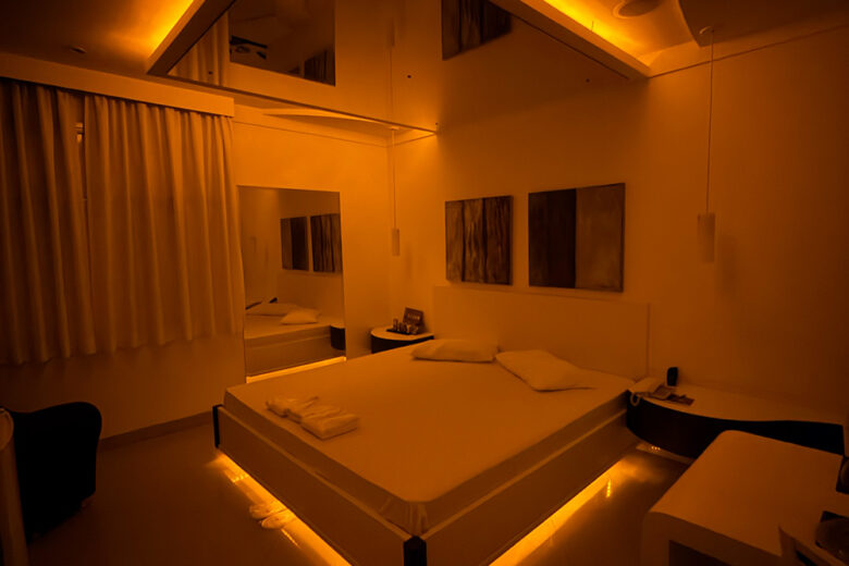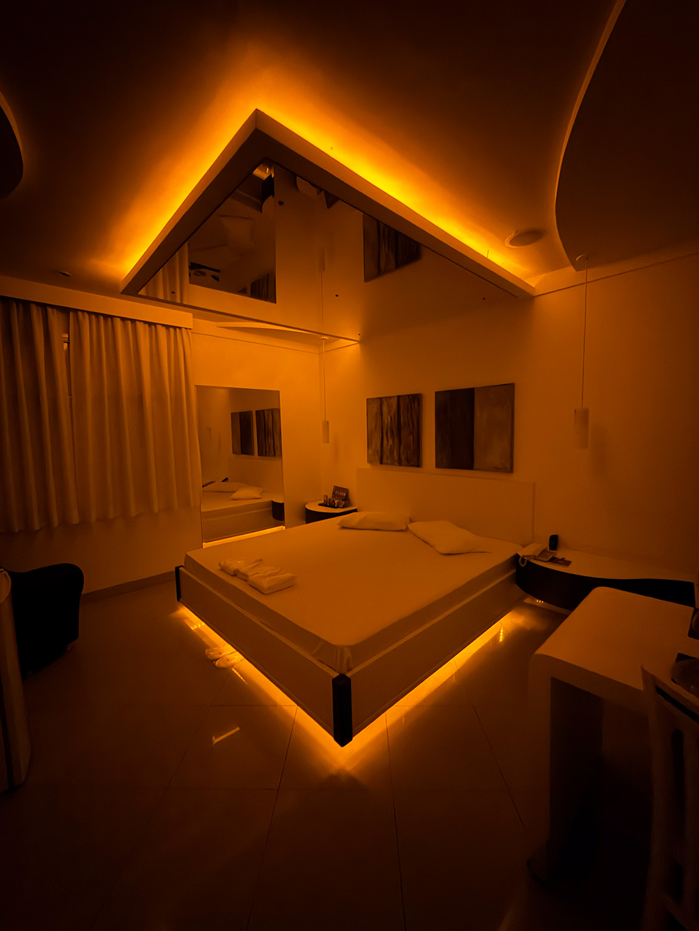 Smart TV 50”, Ar Condicionado Split, Cadeira Erótica, Color Light, Frigobar, Caixa de Som Bluetooth, Hidromassagem e Pista de Dança