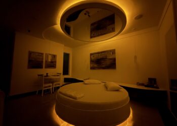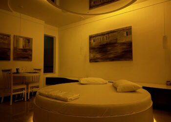 Smart TV 50”, Ar Condicionado Split, Cadeira Erótica, Color Light, Frigobar, Caixa de Som Bluetooth, Hidromassagem e Decoração Erótica