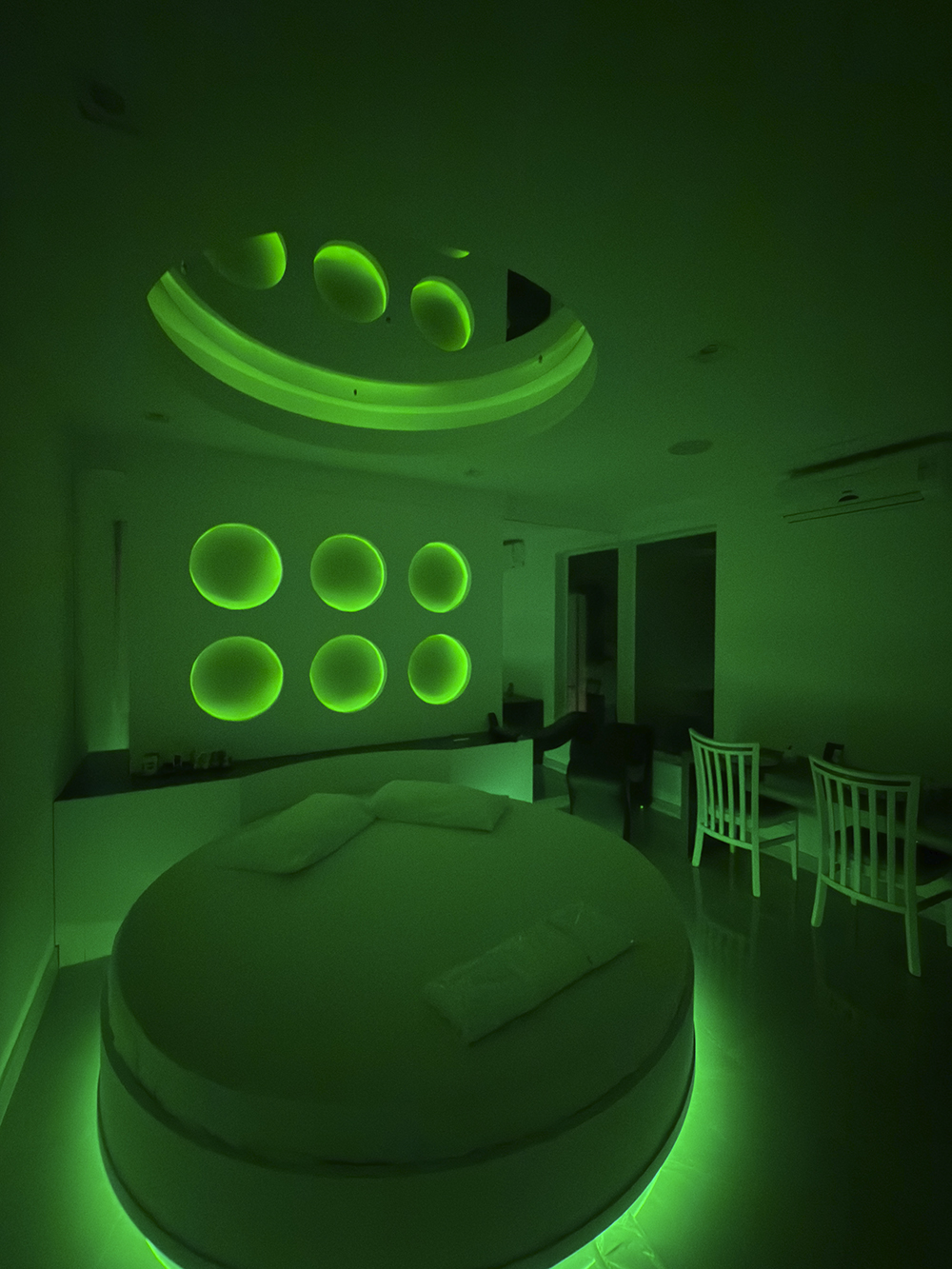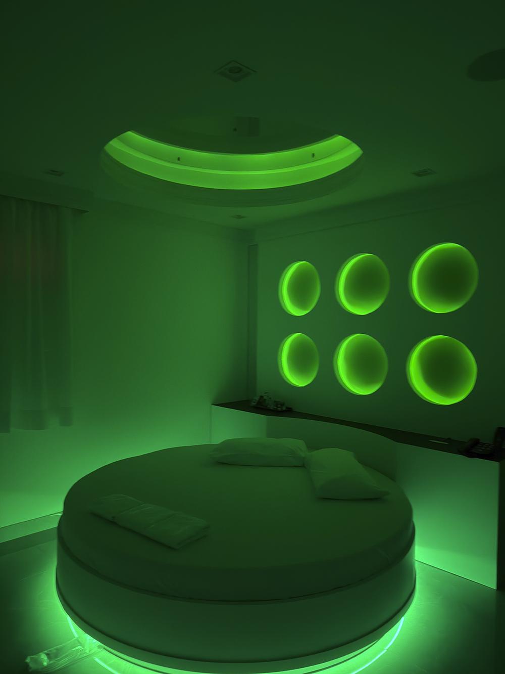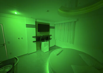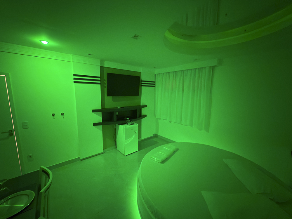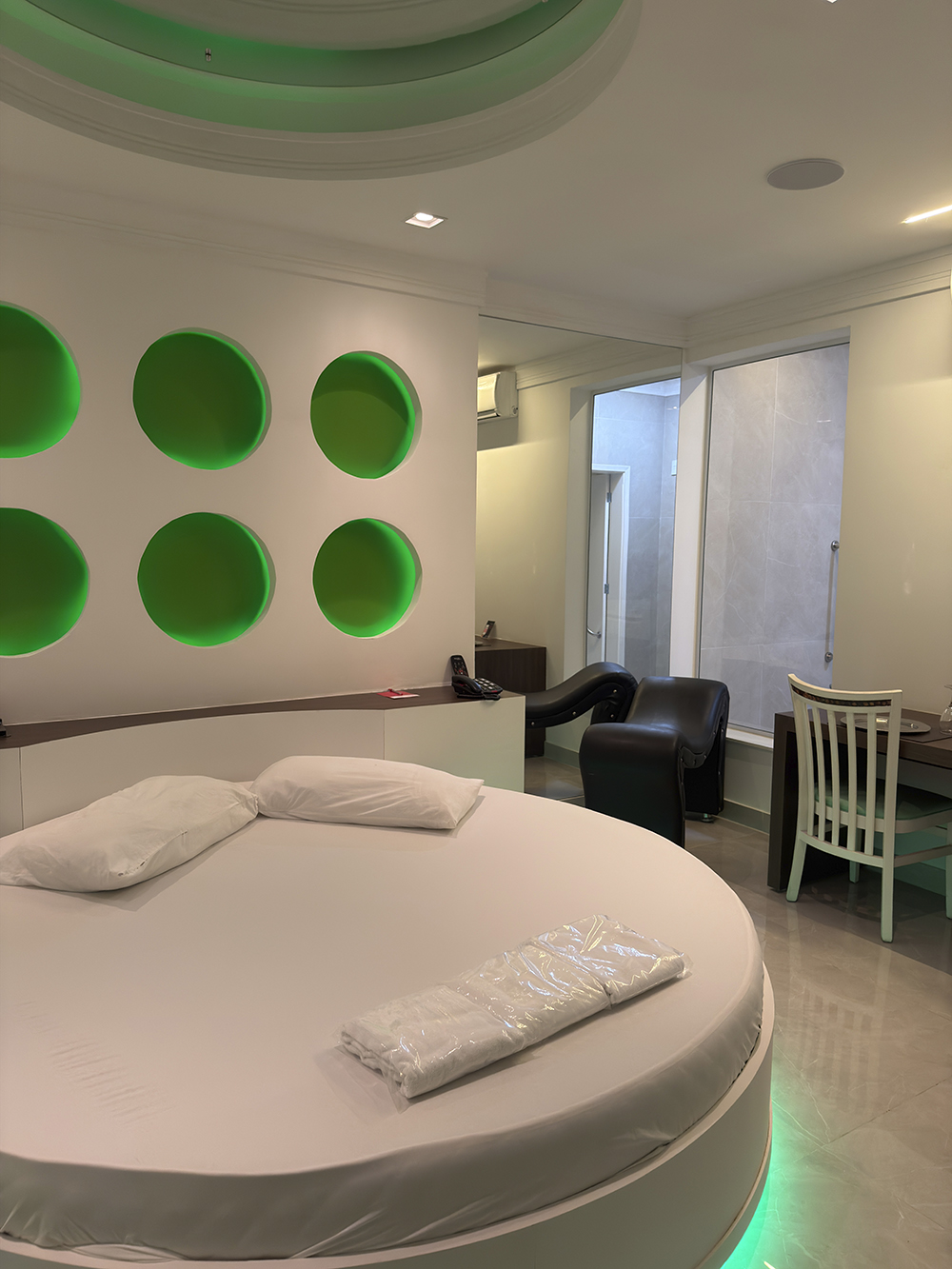 Smart TV 50”, Ar Condicionado Split, Cadeira Erótica, Color Light, Frigobar, Caixa de Som Bluetooth, Hidromassagem e Pista de Dança