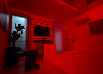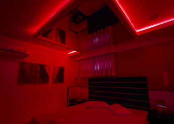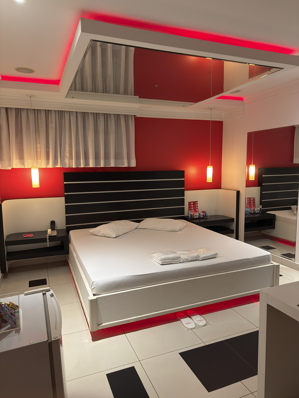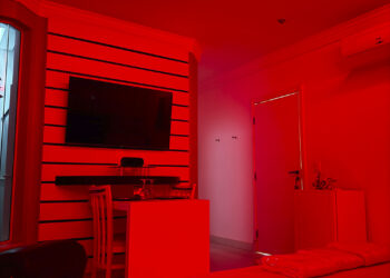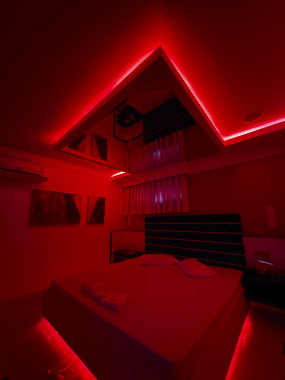 Smart TV 50”, Ar Condicionado Split, Cadeira Erótica, Color Light, Frigobar, Caixa de Som Bluetooth, Hidromassagem e Decoração Erótica
