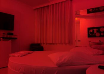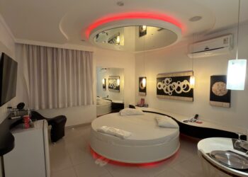 Smart TV 50”, Ar Condicionado Split, Cadeira Erótica, Color Light, Frigobar, Caixa de Som Bluetooth, Hidromassagem e Decoração Erótica