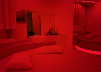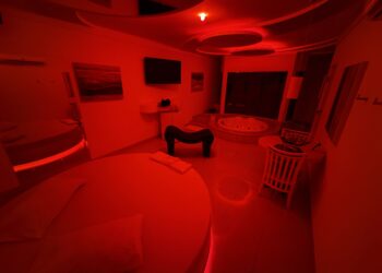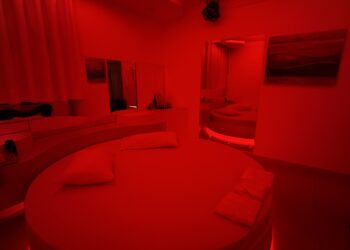 Smart TV 50”, Ar Condicionado Split, Cadeira Erótica, Color Light, Frigobar, Caixa de Som Bluetooth, Hidromassagem e Decoração Erótica