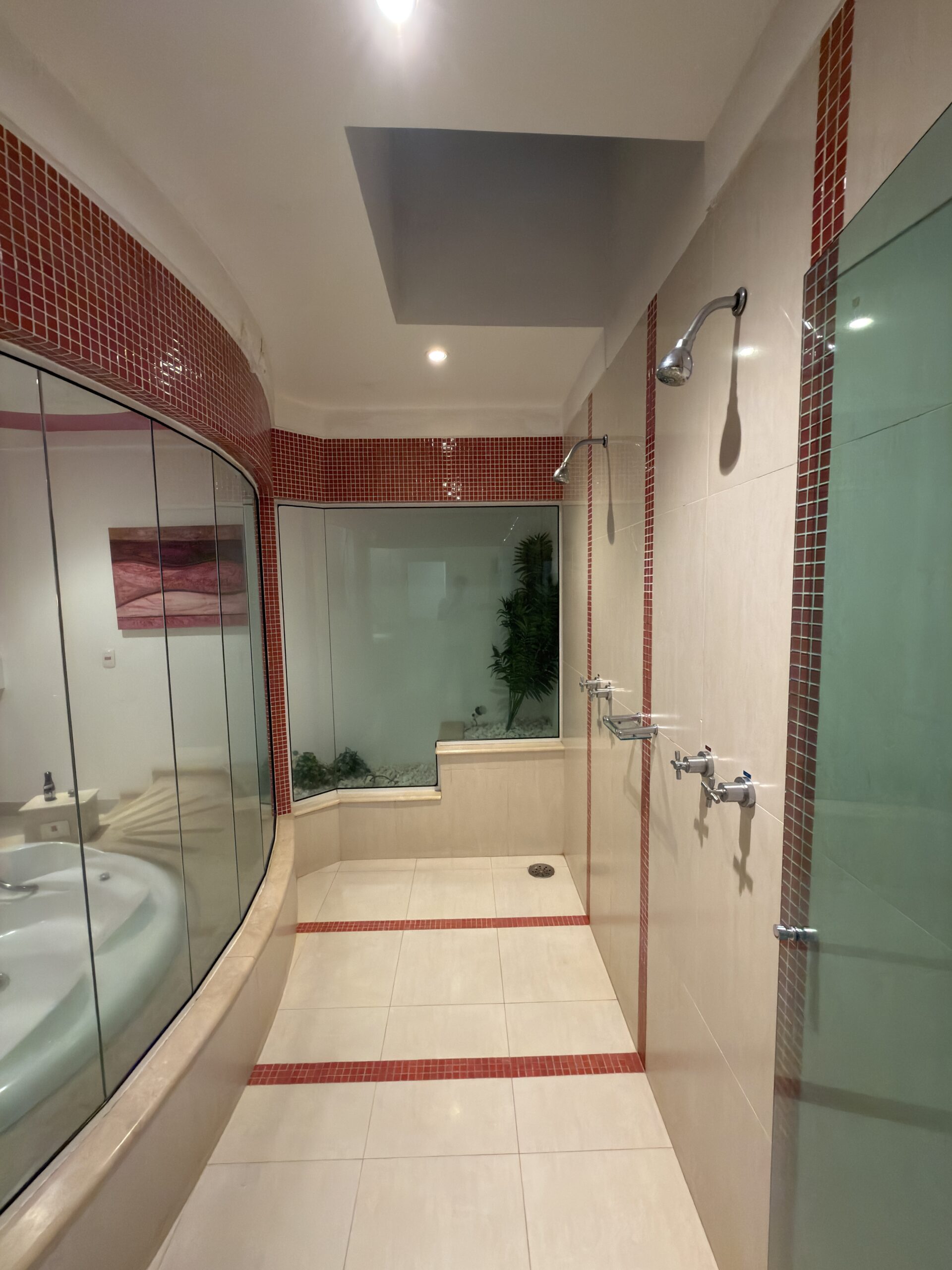 Piscina, Teto Solar, Cascata, 3 Smart TV 50”, SPA para 6 pessoas, Duas Camas, Churrasqueira, Solarium, Sauna, Pista de Dança, Ar Condicionado Split, Cadeira Erótica, Color Light, Frigobar, Home Theater
