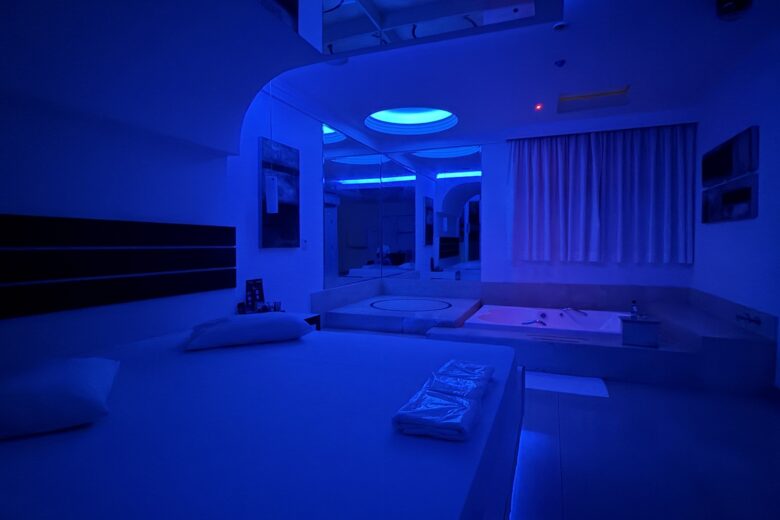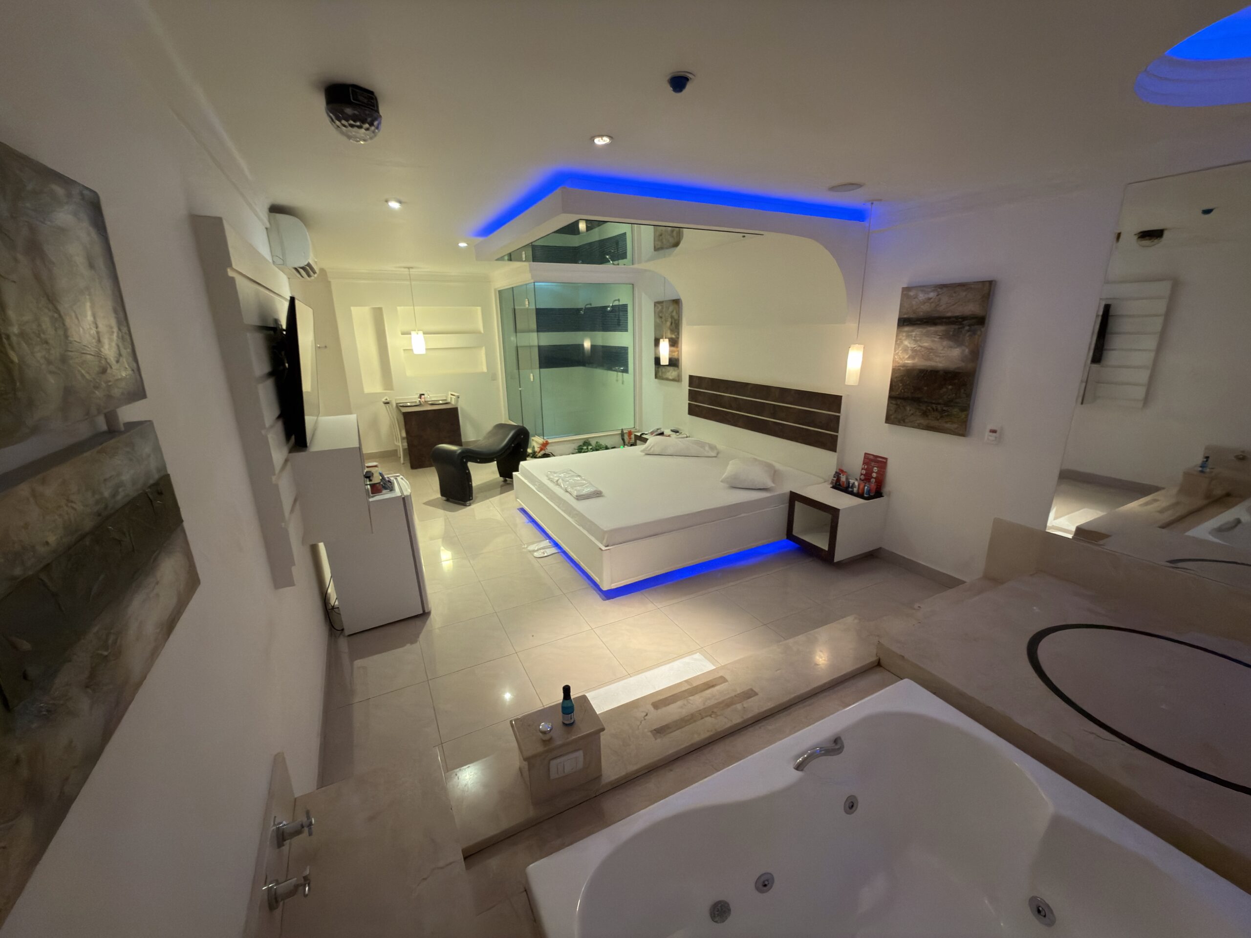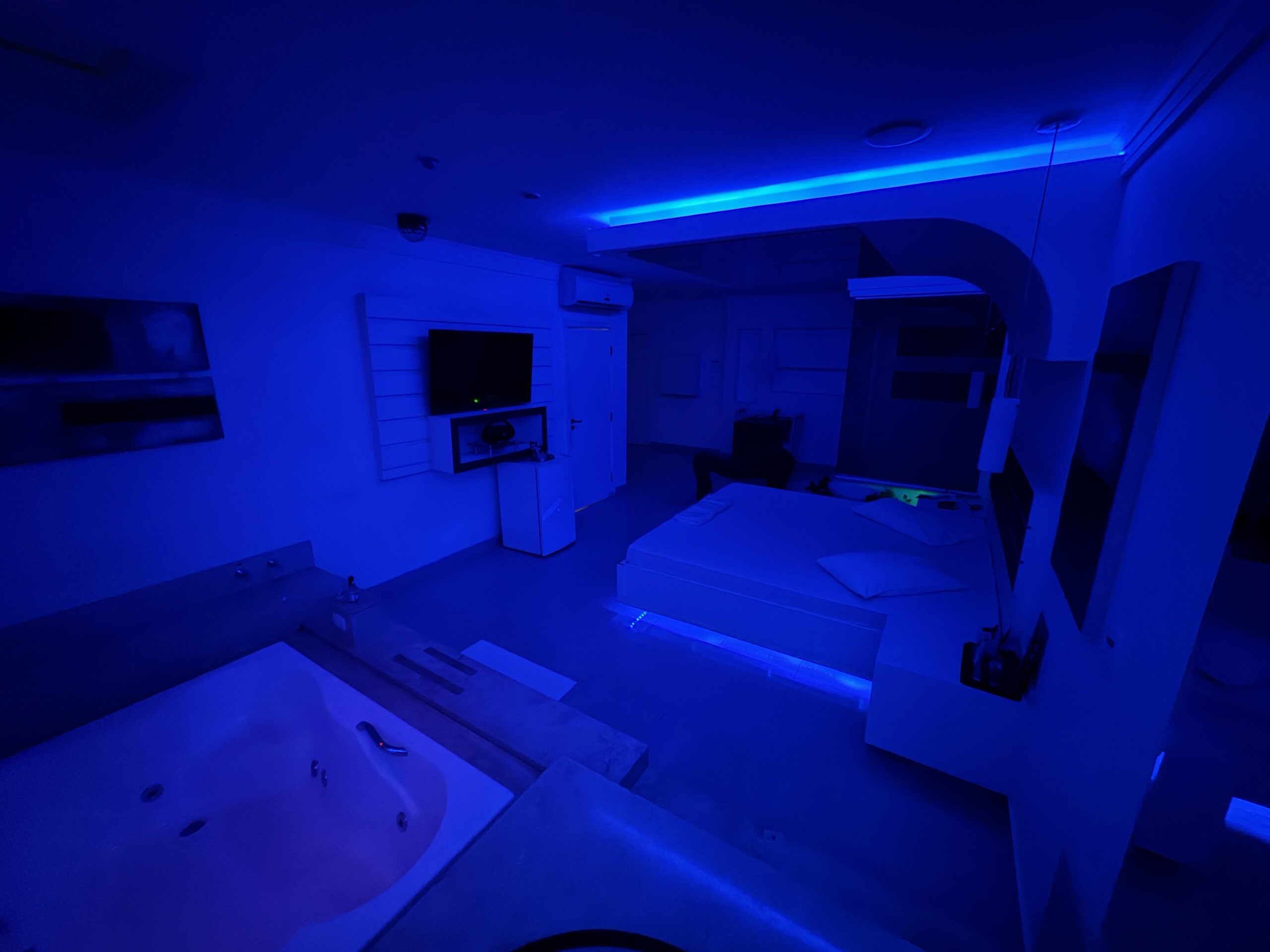 Smart TV 50”, Ar Condicionado Split, Cadeira Erótica, Color Light, Frigobar, Caixa de Som Bluetooth, Hidromassagem e Pista de Dança
