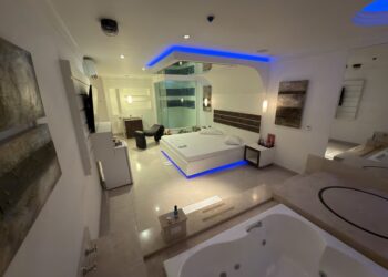 Smart TV 50”, Ar Condicionado Split, Cadeira Erótica, Color Light, Frigobar, Caixa de Som Bluetooth, Hidromassagem e Sauna