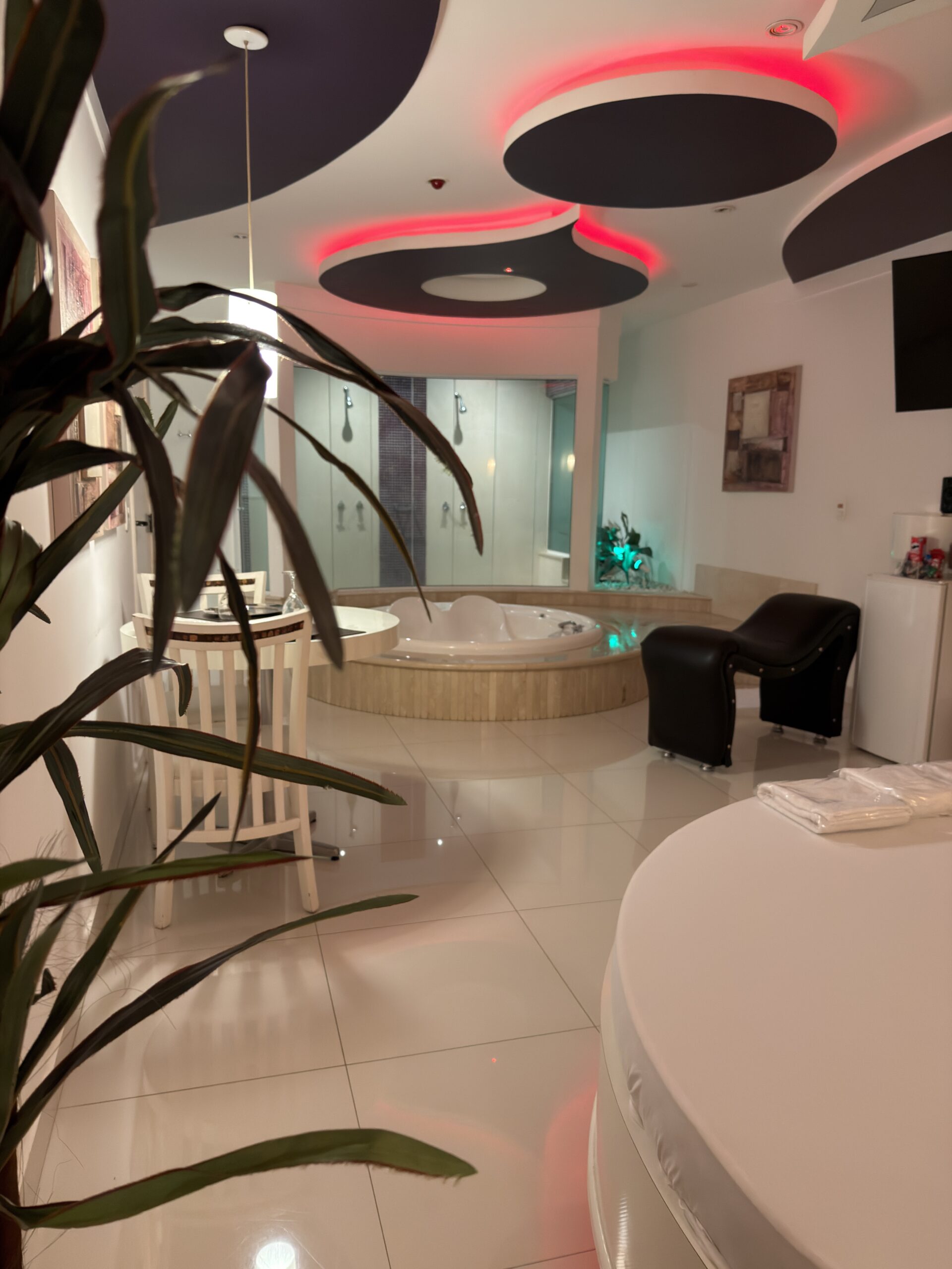 Smart TV 50”, Ar Condicionado Split, Cadeira Erótica, Color Light, Frigobar, Caixa de Som Bluetooth, Hidromassagem e Pista de Dança