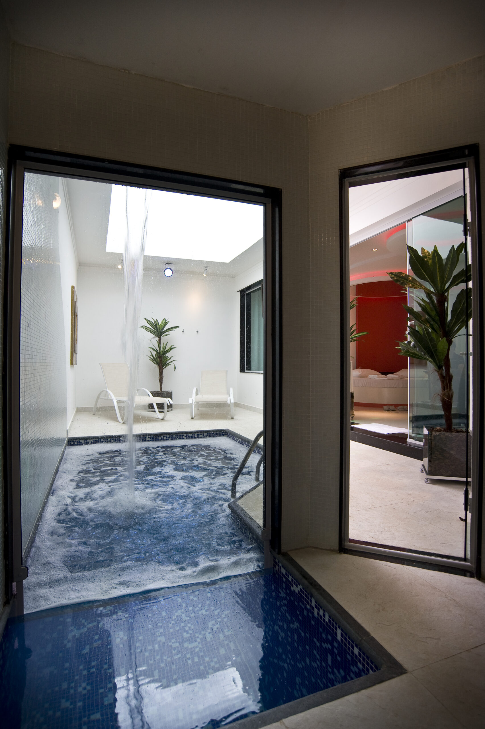 Piscina, Teto Solar, Cascata, Smart TV 50”, Ar Condicionado Split, Cadeira Erótica, Color Light, Frigobar, Home Theater, Hidromassagem, Sauna e Pista de Dança