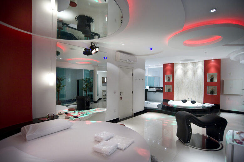 Smart TV 50”, Ar Condicionado Split, Cadeira Erótica, Color Light, Frigobar, Caixa de Som Bluetooth, Hidromassagem e Pista de Dança