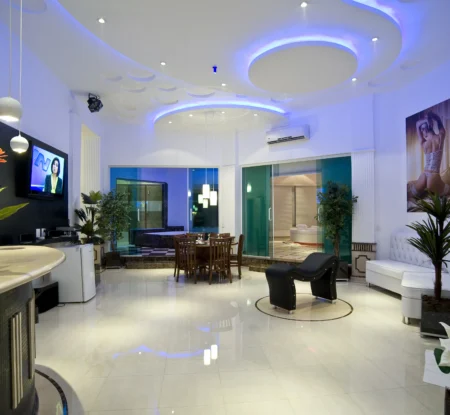 Smart TV 50”, Ar Condicionado Split, Cadeira Erótica, Color Light, Frigobar, Caixa de Som Bluetooth, Hidromassagem e Pista de Dança